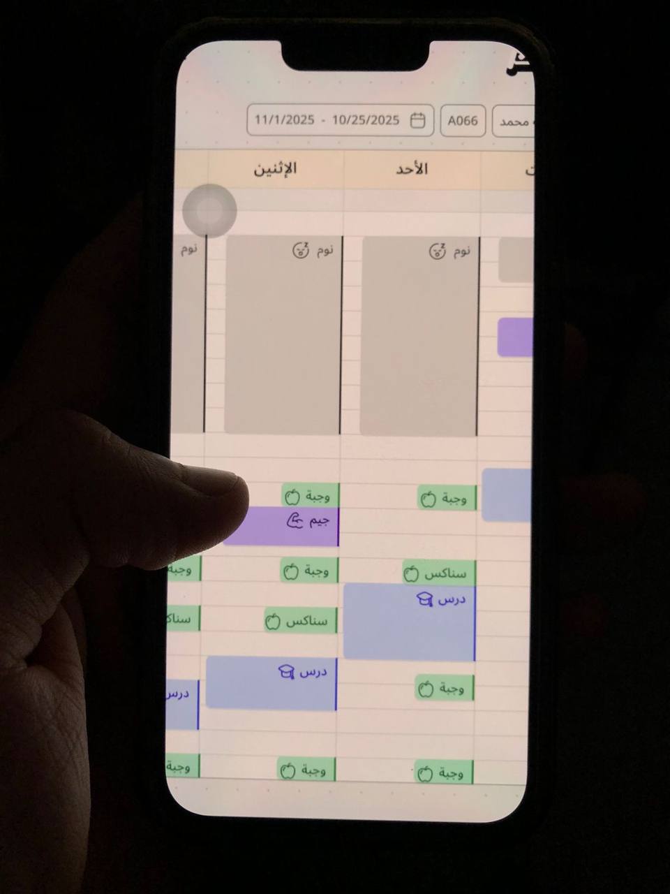 تخطيط أسبوعك بالكامل (شغل، دراسة، نوم، جيم، أكل) في جدول واضح تقدر تحتفظ به أو تطبعه.