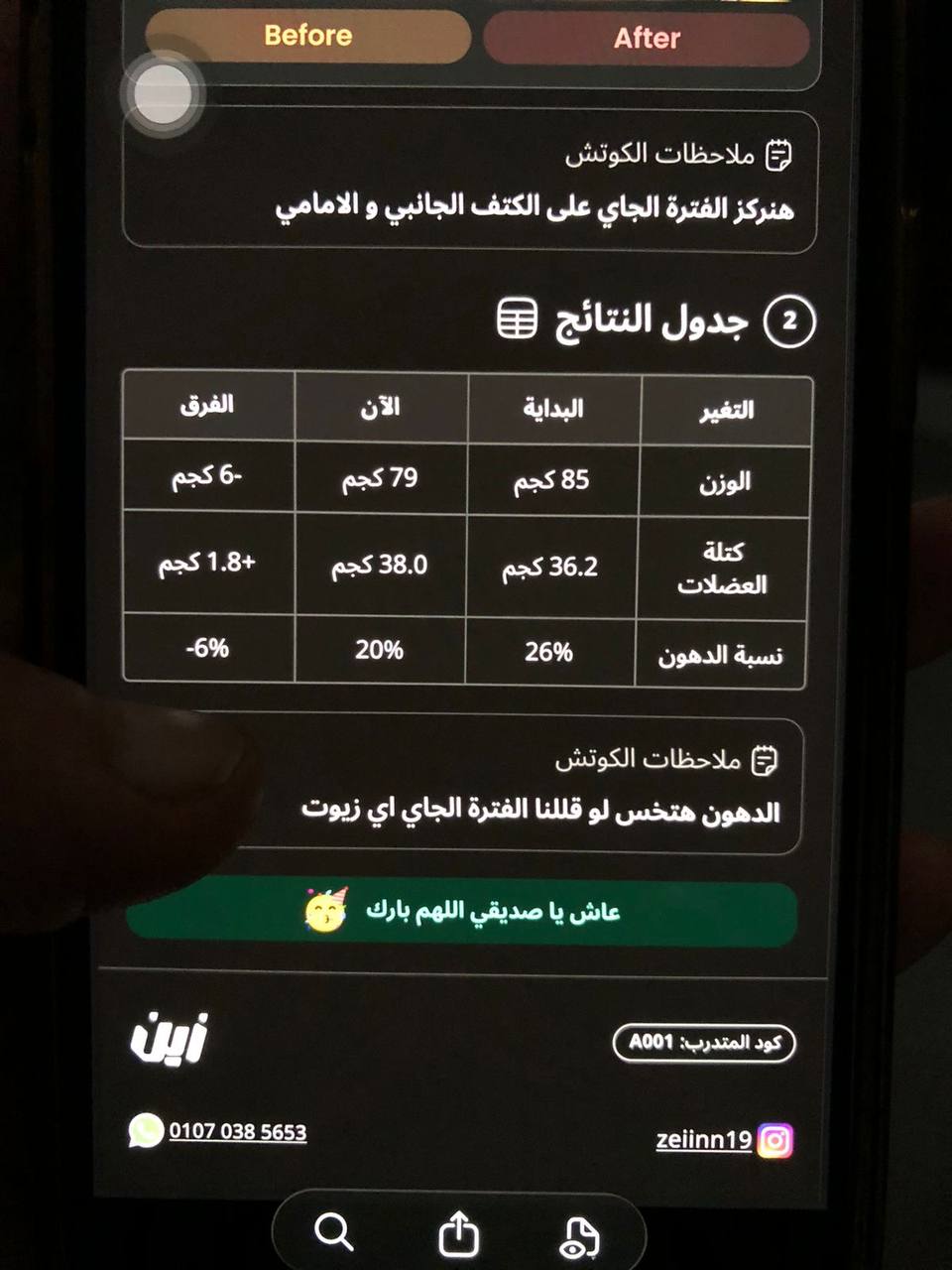 بنجهّز تقرير يوضّح تطور وزنك، قياساتك، وأدائك .